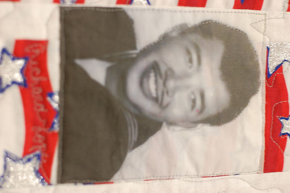 38.5” x 49”, cotton, photo transfers, thread, piecing, machine stitching and quilting.